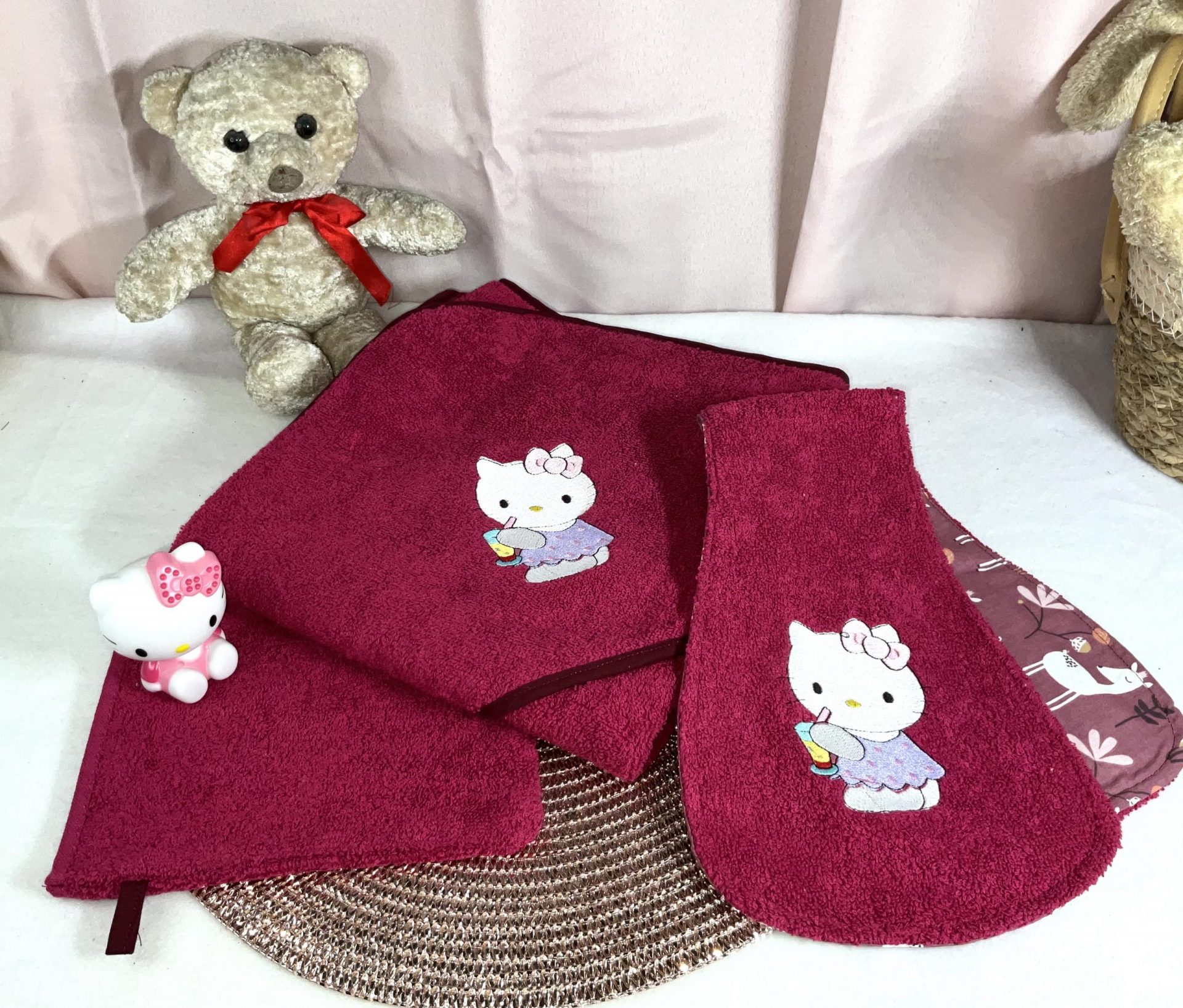 ensemble bébé comprenant une cape de bain de 80 cm x 80cm, un protège épaule, un gant de toilette . La broderie du prénom est comprise dans le prix sur une pièce au choix frais de port compris
